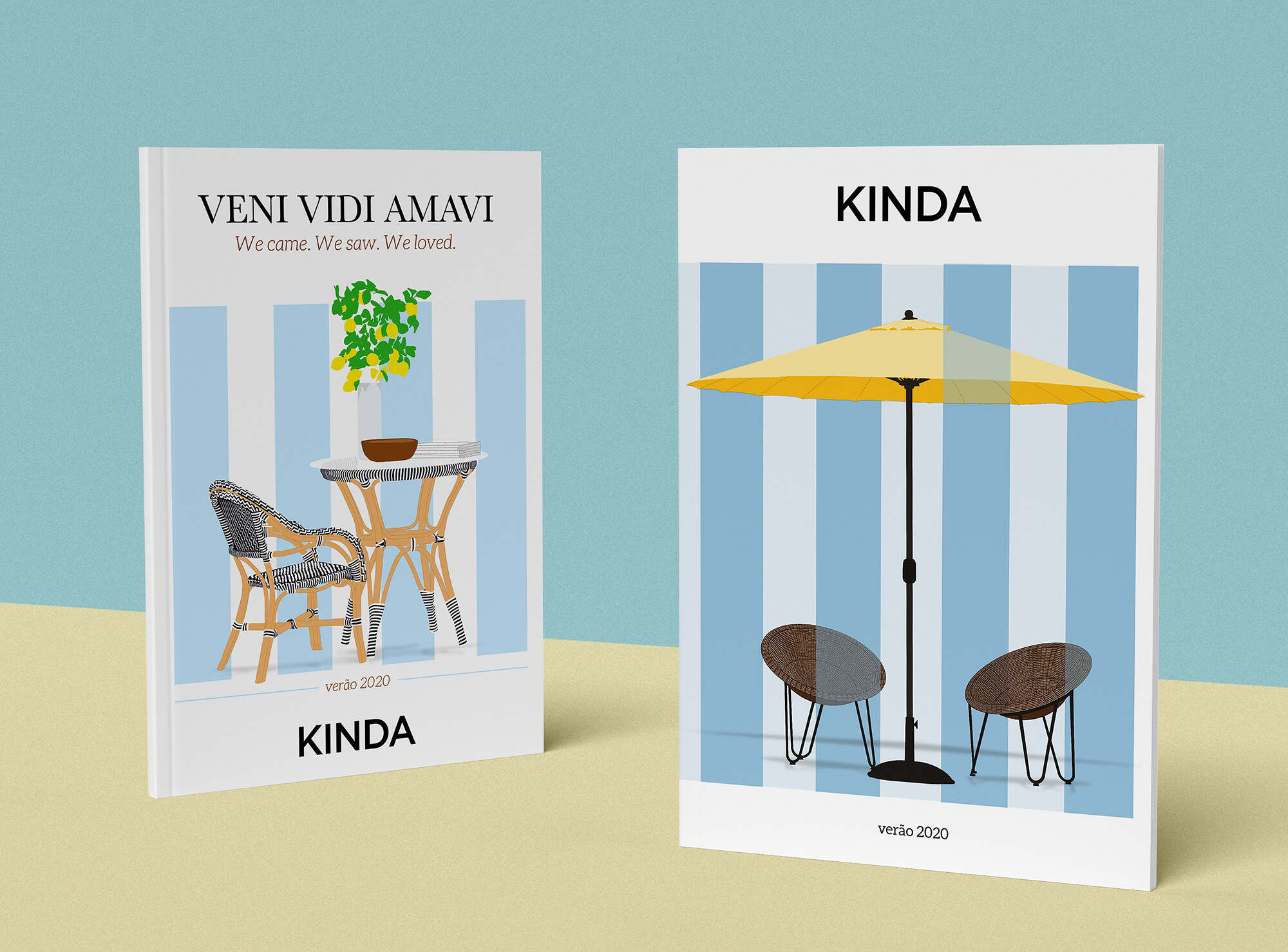 KINDA is a furniture and home deco store based in Portugal. In 2020 I entered a design competition for the illustration and cover design of their summer magazine and was awarded first place. Below are two different proposals I submitted for the pitch.